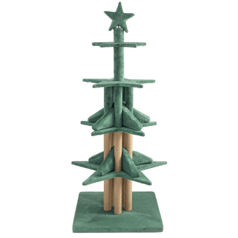 Es una estructura de varios niveles que combina la función de rascador con plataformas de descanso y juego, ideal para la temporada navideña.