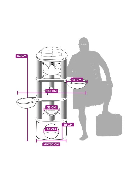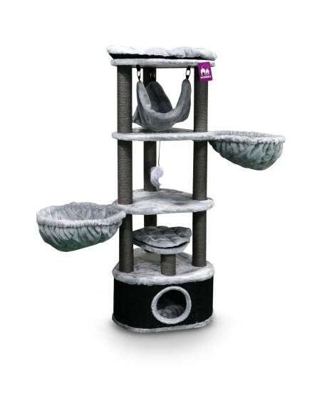 Creemos que los gatos merecen lo mejor. Con esto en mente, comenzamos el diseño de Catherina 160. En un mueble para gatos, los gatos deberían poder descansar, dormir y soñar. Y, por supuesto, debería haber suficiente espacio para jugar, estirarse y rascarse. Y si lo decimos nosotros mismos… lo hemos conseguido muy bien. ¿Qué gato no quiere relajarse en una hermosa hamaca suave o en una casa para gatos? Oh, sí, debido a la forma triangular, esta casa para gatos encaja perfectamente en una esquina.