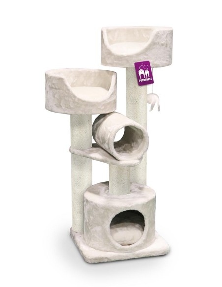 ¿Está buscando un lujoso condominio para gatos para su gato, pero no quiere gastar demasiado espacio en él? ¡Entonces dejar de mirar! Nuestra Victoria 125 tiene todo lo que tú y tu Rebel necesitan. Porque con tres postes rascadores de 12 centímetros de grosor, felpa suave y aterciopelada, dos cestas de salón, un túnel de juegos, un juguete y una hermosa casa para dormir, este hermoso mueble rascador está completamente equipado para entretener a sus gatos.
