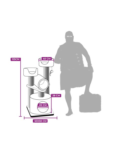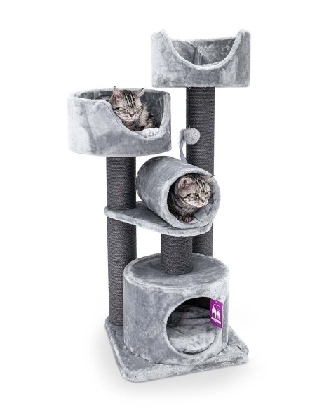 ¿Está buscando un lujoso condominio para gatos para su gato, pero no quiere gastar demasiado espacio en él? ¡Entonces dejar de mirar! Nuestra Victoria 125 tiene todo lo que tú y tu Rebel necesitan. Porque con tres postes rascadores de 12 centímetros de grosor, felpa suave aterciopelada, dos cestas lounge, un túnel de juegos, un juguete y una hermosa casa para dormir, este hermoso mueble rascador está completamente equipado para entretener a sus gatos.