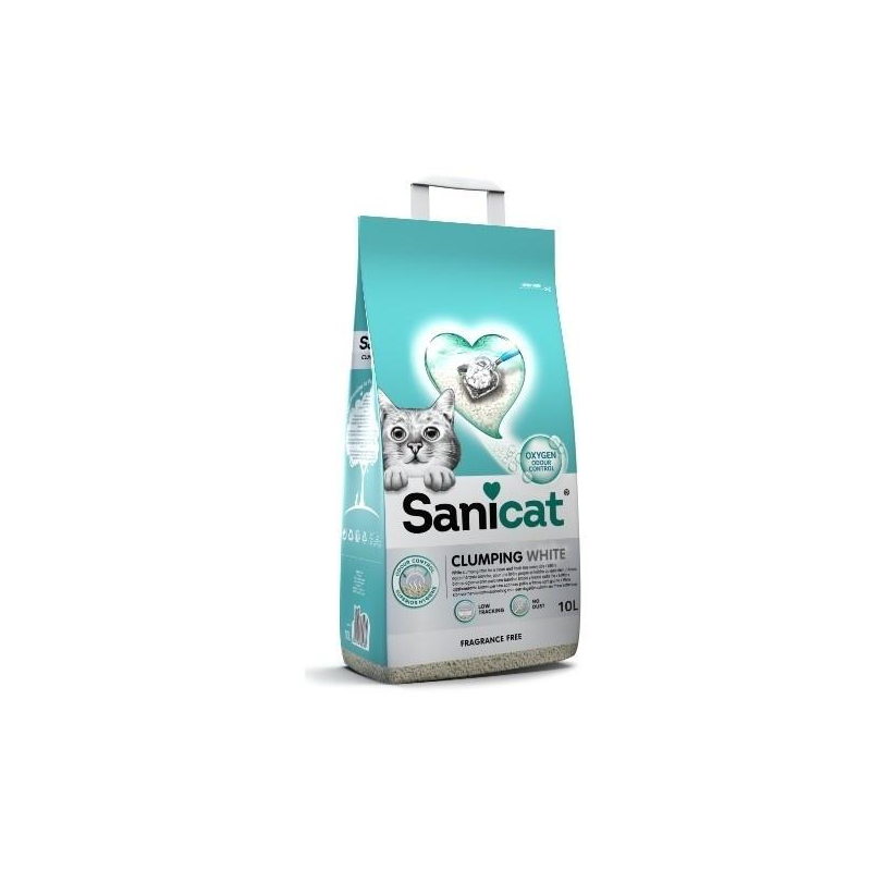 10 L Mejora la higiene en el hogar y en la bandeja de tu gato con la arena Sanicat Clumping White y ¡olvídate de los malos olores!