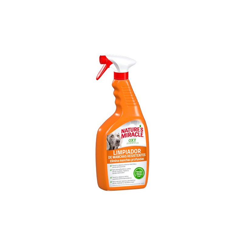 Nature's Miracle® Set-In Stain Remover Perro se centra en las manchas y los olores persistentes. La fórmula con oxígeno concentrado penetra, separa y elimina las manchas y los olores incrustados provocados por perros como orina, heces y suciedad. Nature's Miracle® Set-In Stain Remover Perro es una fórmula superoxigenada de acción doble rápida para desincrustar manchas y olores que se activa alinstante para eliminar las manchas y los olores incrustados. Si se utiliza y se almacena según se indica, este producto es seguro para sus mascotas y su hogar, y puede usarse en varios tipos de suelos, como alfombras, superficies duras, muebles y tejidos. Nature's Miracle® Set-In Stain Remover Perro es la opción perfecta para eliminar manchas persistentes y deja un aroma a naranja fresco y ligero.