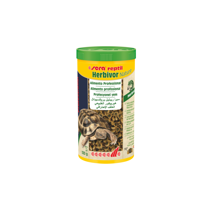 Sera reptil Professional Herbivor Nature es el alimento complementario sin colorantes ni conservantes. Este sabroso granulado bicolor es perfecto para todos los reptiles herbívoros.