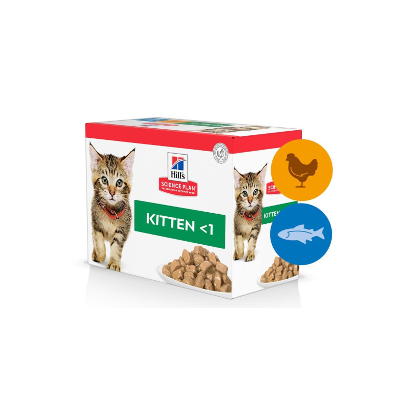 Hill’s Science Plan Gatitos con Pollo o pescado es un alimento completo para gatitos desde el destete hasta los 12 meses de edad, así como para gatas en gestación o lactación. Su fórmula en suaves bocaditos en salsa está diseñada para ofrecer una nutrición equilibrada que favorece el desarrollo saludable del cerebro, la visión, el sistema inmunitario y la masa muscular, con un sabor que tu gatito adorará.
