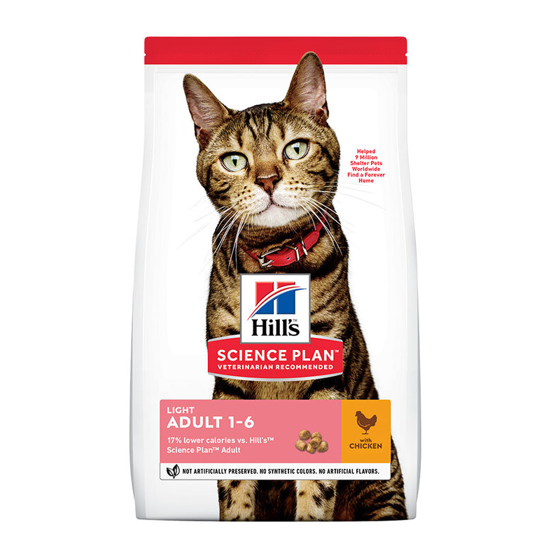 Hill's Science Plan Light alimento seco para gatos adultos con pollo.