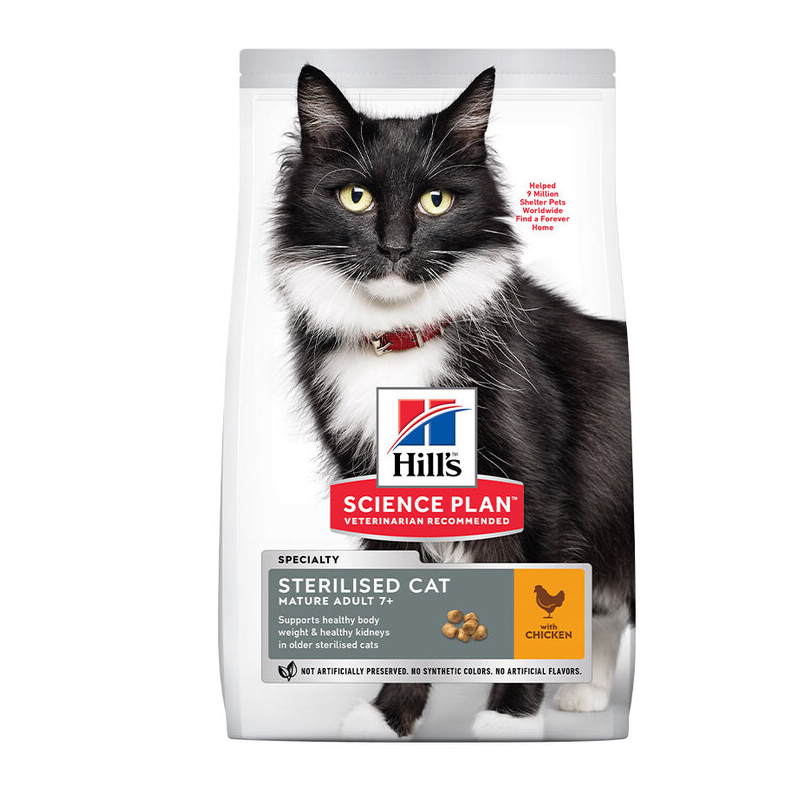 Hill’s Science Plan Sterilised Cat Senior con Pollo es un alimento completo para gatos esterilizados a partir de los 7 años.