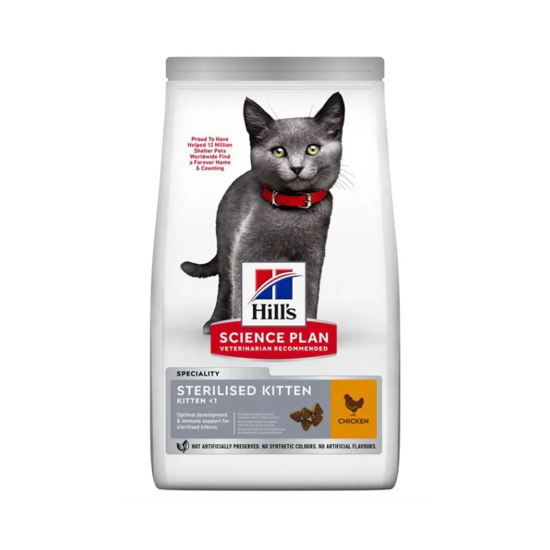 Hill’s Science Plan Sterilised Kitten con Pollo ha sido especialmente formulado para cubrir las necesidades específicas de los gatitos tras la esterilización, ayudándoles a crecer de forma saludable y equilibrada. Aporta proteínas de alta calidad, un contenido de grasa controlado y antioxidantes clínicamente probados para apoyar su sistema inmunitario en desarrollo.