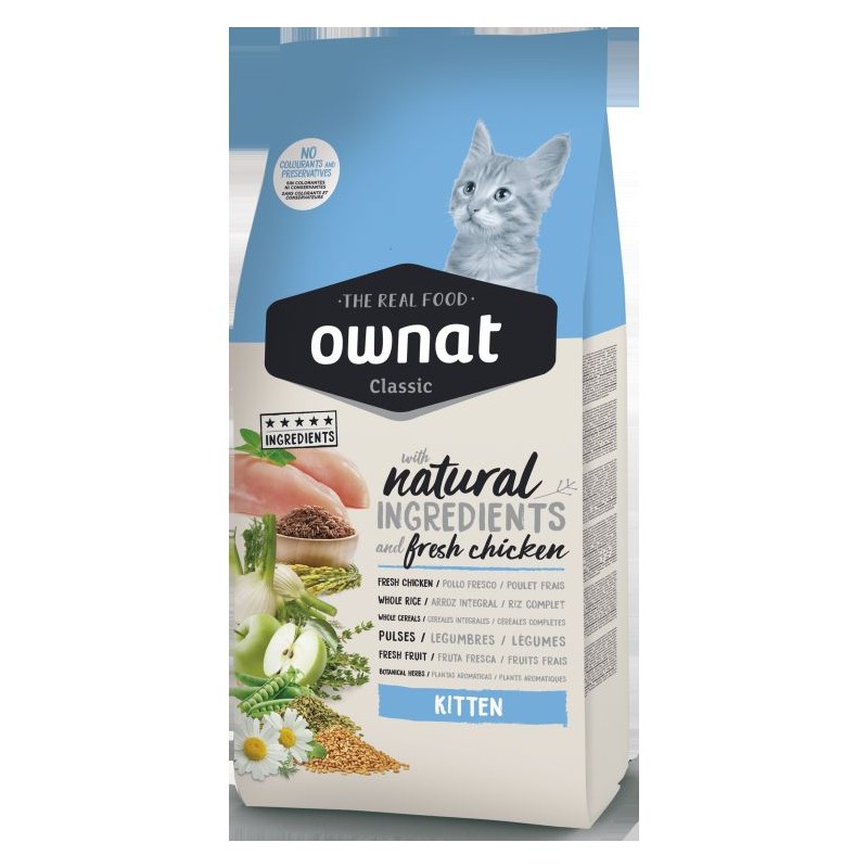 Alimento completo y equilibrado para gatitos desde el destete hasta los 12 meses. Formulado específicamente para cubrir las altas necesidades nutricionales del crecimiento, OWNAT Classic Kitten favorece el desarrollo del sistema inmunitario, muscular y óseo.
