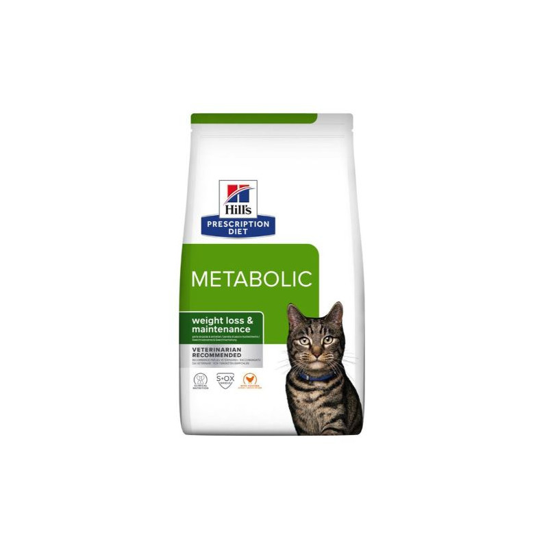 Hill's Prescription Diet Metabolic es un alimento dietético completo para gatos adultos, diseñado específicamente para la pérdida de peso y el mantenimiento de un peso saludable. Su fórmula única trabaja con el metabolismo natural del gato para quemar grasa de manera efectiva y mantenerlo satisfecho.