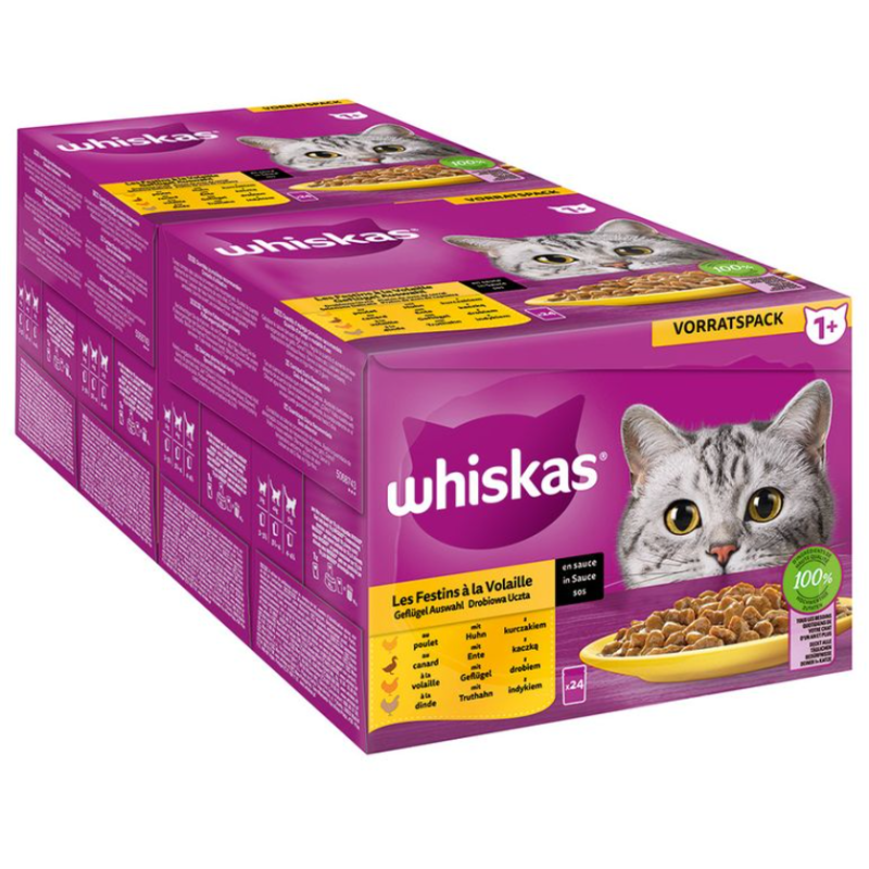 Whiskas 1+ es una comida húmeda completa y equilibrada, diseñada especialmente para cubrir el 100 % de las necesidades nutricionales de los gatos adultos a partir de 1 año. Su fórmula incluye proteínas de alta calidad para mantener la musculatura fuerte, vitamina C para reforzar las defensas naturales y zinc, esencial para una piel sana y un pelaje brillante.