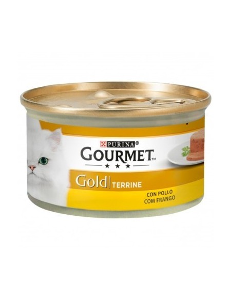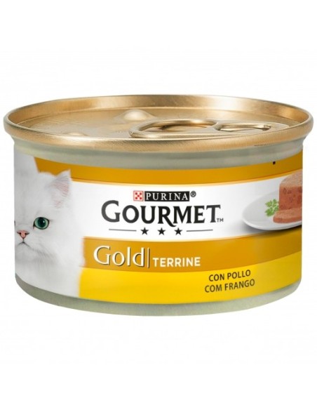 Tu gato es un verdadero experto y le gusta probar diferentes texturas y sabores cada día. Por eso GOURMET Gold ha creado Terrine, sabrosas recetas para mimar su sofisticado paladar con una experiencia diferente de sabor en cada comida. Tiernos bocados con carnes o pescados finamente cortados y combinados con tiernos trocitos para ofrecer a tu gato el placer de una ligera y apetitosa textura. Terrine de GOURMET Gold una extensa gama de sabrosas recetas para ofrecerles momentos de sabor cada día.