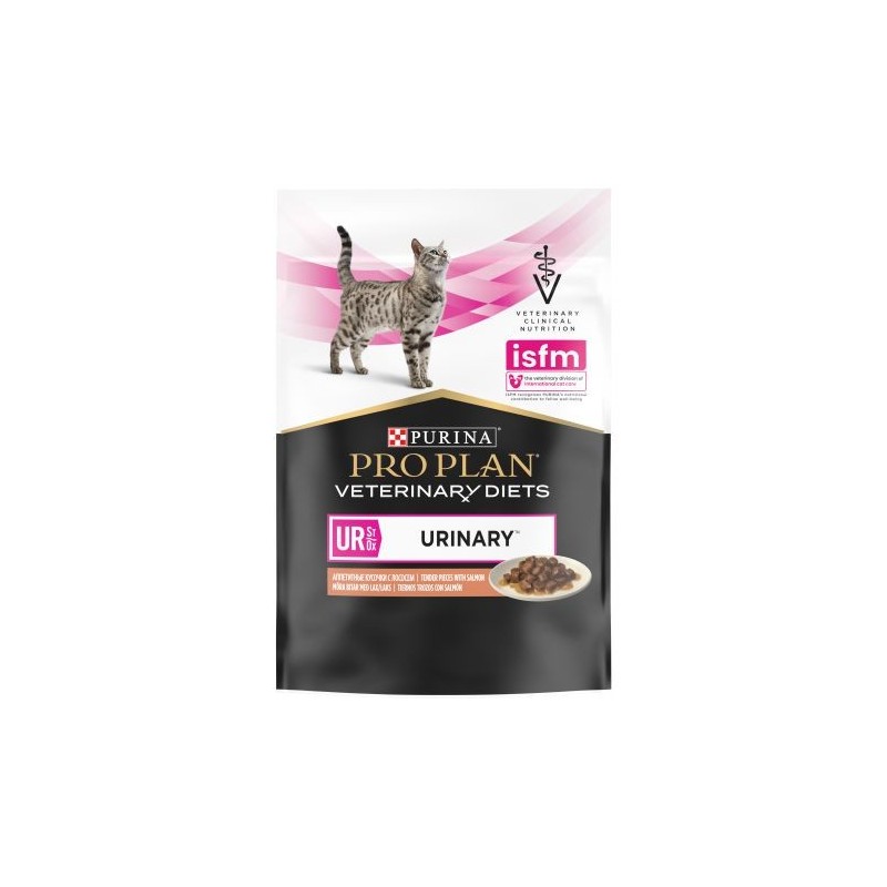 Alimento dietético completo en sobre para gatos adultos. Formulado para la disolución y la reducción de la reaparición de cálculos de estruvita con propiedades de acidificación de la orina y con un bajo contenido de magnesio. Contenido moderado de calorías para ayudar a mantener un peso corporal ideal.