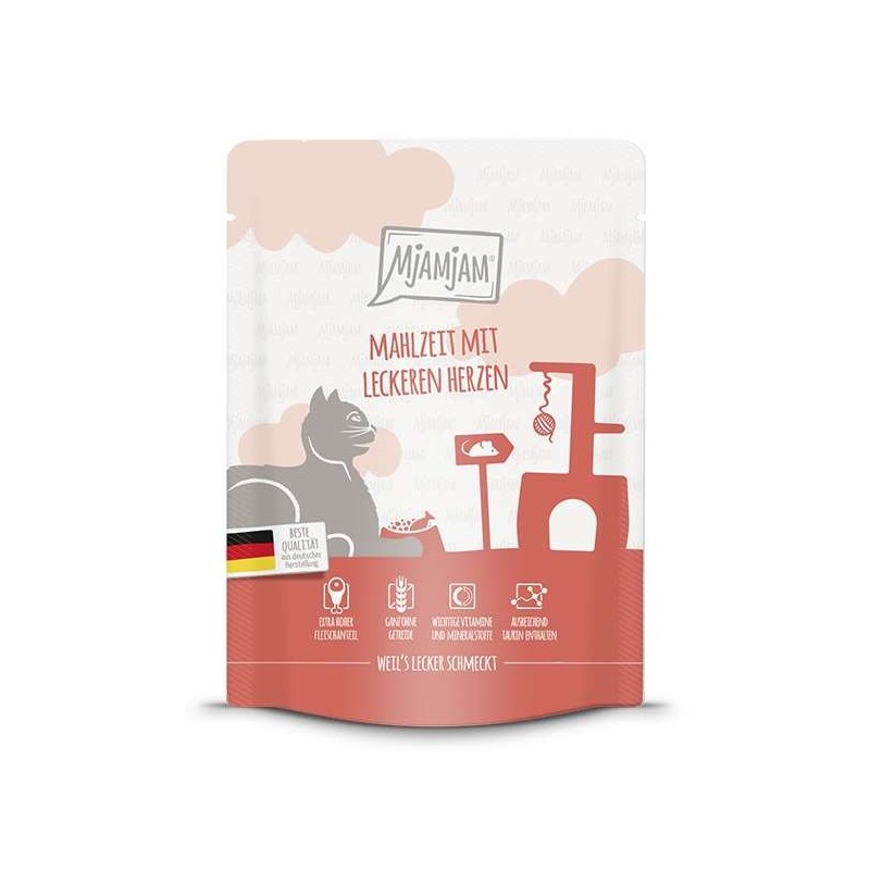 Esta comida le ofrece a tu amado todo lo que necesita. La carne de res fresca , combinada con corazones sabrosos y saludables , es una experiencia de placer única y exclusiva que también le proporciona todas las vitaminas y minerales importantes. "Adecuado a la especie, cercano a la naturaleza y la presa": esto representa para nosotros un contenido de carne muy alto. Se evitan por completo los cereales, el azúcar, los conservantes o aromatizantes, así como los aglutinantes sintéticos.