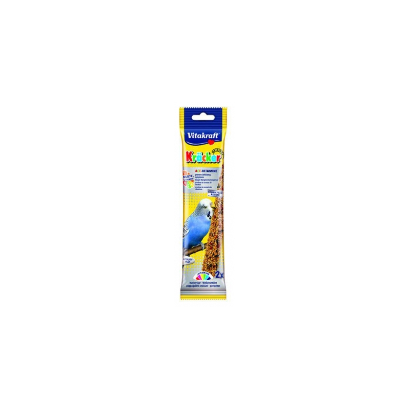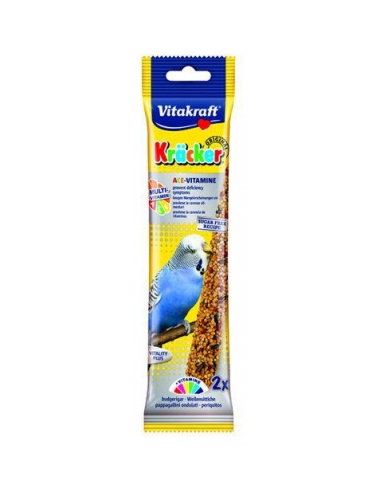 Alimento completo en forma de barrita, con tres capas de semillas y sustancias minerales, horneadas sobre un palito de madera, para que el periquito tenga que picar y esforzarse por obtener su alimento como lo haría en la naturaleza.