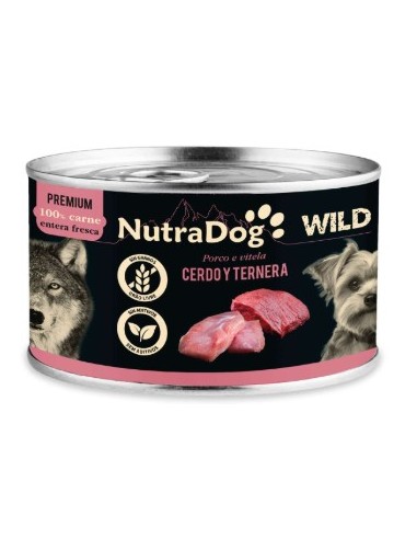 Alimento húmedo para perros 100% natural, elaborado únicamente con carne de ternera y cerdo deshuesadas. Los perros son animales carnívoros y necesitan una dieta rica en carne y grasas de calidad para satisfacer sus necesidades proteicas. Este alimento está compuesto por piezas enteras de ternera y cerdo deshuesadas, sin aditivos ni ningún otro ingrediente.
