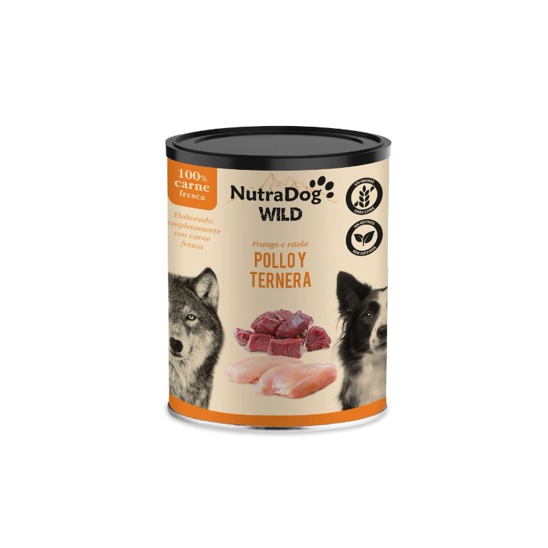 Lata de pollo y ternera para perros NutraDog WILD