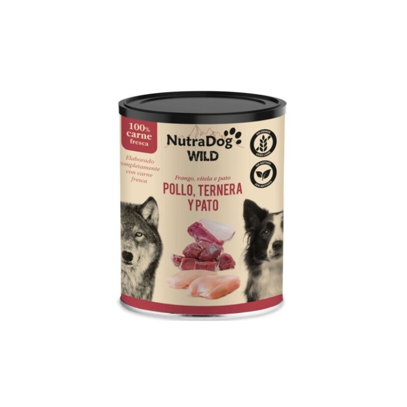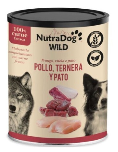Lata de pollo, ternera y pato para perros NutraDog WILD