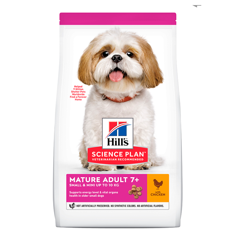 Hill's Science Plan Small & Mini Mature Adult 7+ con Pollo es un alimento completo y equilibrado, especialmente formulado para perros de razas pequeñas y mini de entre 7 y 10 años de edad. Elaborado con ingredientes de alta calidad y de fácil digestión, este pienso favorece una vejez saludable, aportando energía, vitalidad y apoyo inmunitario.