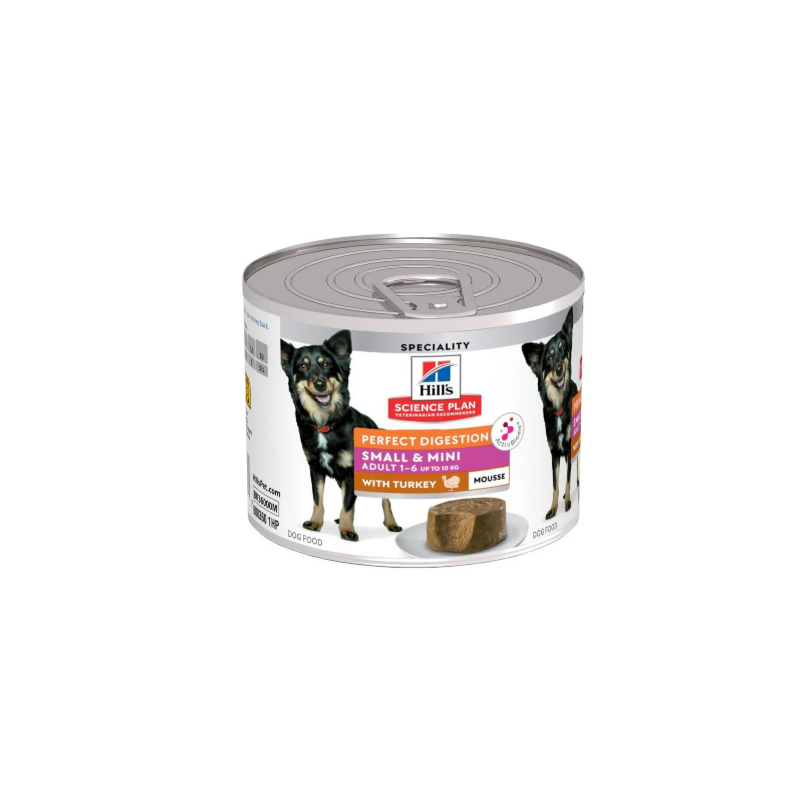 Hill’s Science Plan Perfect Digestion con Pavo es una deliciosa mousse creada para ayudar a tu perro a tener una digestión saludable, especialmente formulada para perros de razas pequeñas de entre 1 y 6 años y hasta 10 kg de peso adulto.