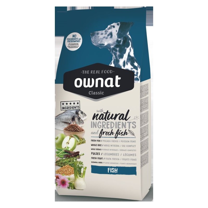 Alimento completo para perros adultos de cualquier raza, especialmente formulado para quienes disfrutan del sabor del pescado y requieren una nutrición equilibrada para su día a día. OWNAT Classic Pescado combina ingredientes naturales con pescado fresco como fuente principal de proteínas, aportando ácidos grasos esenciales que favorecen la piel sana y el pelaje brillante.
