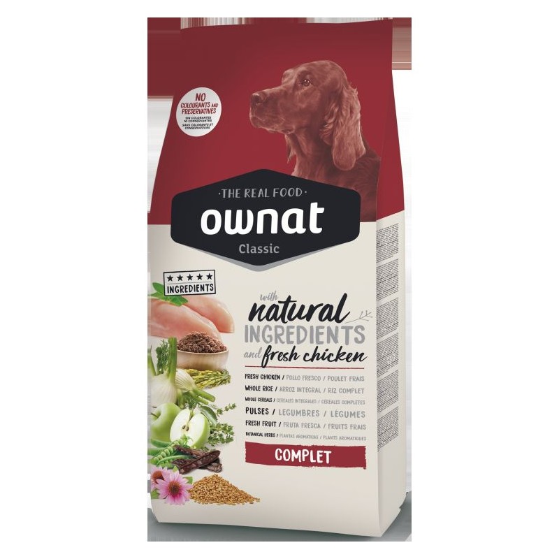 Alimento completo para perros adultos de todas las razas, ideal para una dieta diaria equilibrada. Formulado con ingredientes naturales y carne fresca, OWNAT Classic Complet proporciona todos los nutrientes esenciales para mantener la vitalidad, el peso óptimo y una digestión saludable.