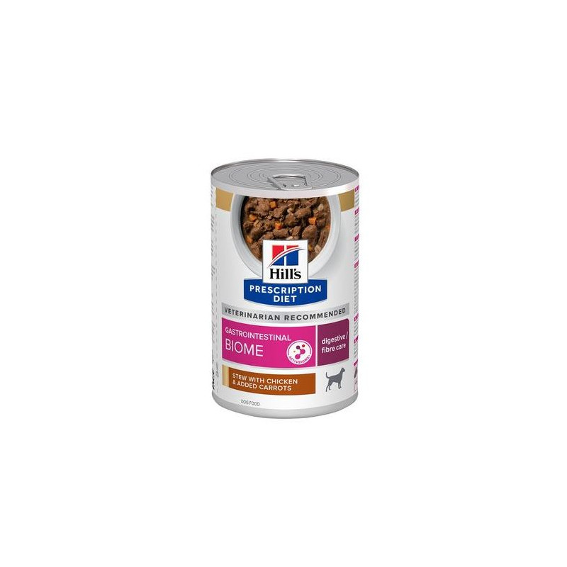 La salud digestiva de tu perro puede verse afectada negativamente por muchas cosas, genética, haber comido algo inadecuado, gases, etc. Sabemos que los problemas digestivos en perros son muy alarmantes, es normal sentirse preocupado. La buena noticia es que puedes ayudar a que tu perro se sienta mejor con Hill's Prescription Diet Gastrointestinal Biome. Este alimento húmedo con sabor a estofado de pollo y verduras es perfecto para mejorar la microbioma de tu perro y complementar el tratamiento veterinario de problemas gastrointrestinales.