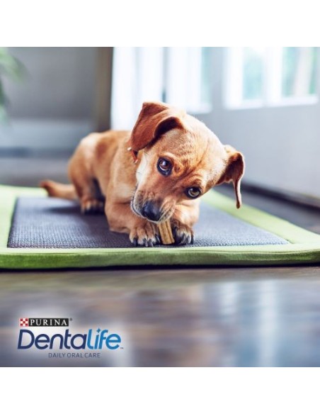 Tu perro tiene unas necesidades de salud específicas y el mantenimiento de un cuidado oral saludable contribuye positivamente a su bienestar general. Es por eso que los expertos de Purina® han desarrollado Purina® DentaLife®, un innovador masticable dental científicamente demostrado que ayuda a limpiar incluso los dientes de difícil alcance de la parte posterior, que son los más vulnerables a la acumulación de placa y sarro. Nuestros masticables dentales están diseñados para el uso y masticación diaria, significando más tiempo de limpieza.
