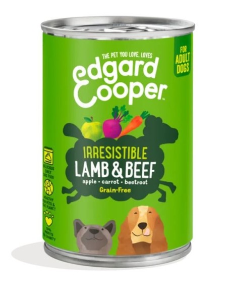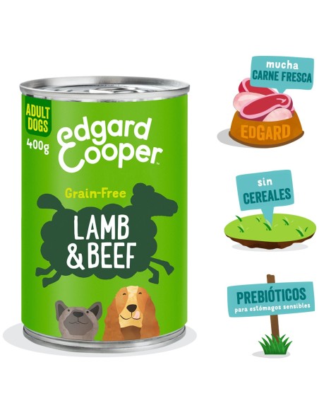 Latas de comida húmeda para perro adulto sin cereales con Cordero y Vacuno de Edgard&Cooper.