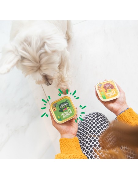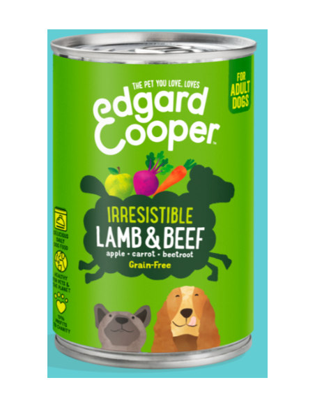 Alimento húmedo natural sin cereales para perros rico en carne fresca. Edgard Cooper Tarrina Carne de Cordero y Vacuno para perros contienecarne fresca de cordero, vacuno, remolacha, espinacas y zanahoria. Esta receta para perros tiene una textura jugosa e irresistible que gusta a todos los perros.