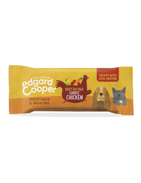 Nuestras barritas energéticas son muy sencillas. Usamos ingredientes simples en esta receta sin cereales, incluidos los mejores cortes de pollo (la barrita tiene un 37% de proteína), combinados con manzana, zanahoria y arándano (para muchas vitaminas y minerales adicionales). Horneamos lentamente nuestros premios y los envasamos en bolsas bolsas de papel fáciles de reciclar. Y, por último, pero no menos importante, donamos el 1% de todas nuestras ventas a organizaciones benéficas que ayudan a cuidar a los perros que nosotros no podemos atender.