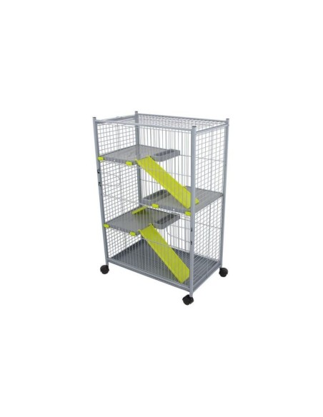 Esta jaula es práctica, grande o bonita. Ideal para conejos, chinchillas y hurones. Fabricado en Europa (España), con pintura epoxi sin plomo y plástico polipropileno, no tóxico.