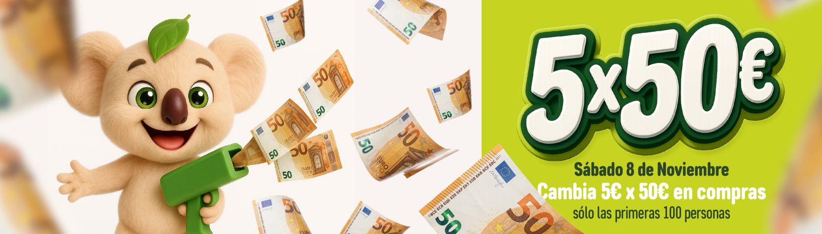 Este sábado 8 de Noviembre en Koala Mascotas del CC Las Rotondas tenemos una promo muy especial. Las 100 primeras personas que vengan con un billete de 5€ se los cambiamos por 50 en compras en la tienda. Como lo lees, traes 5 y te llevas 50.