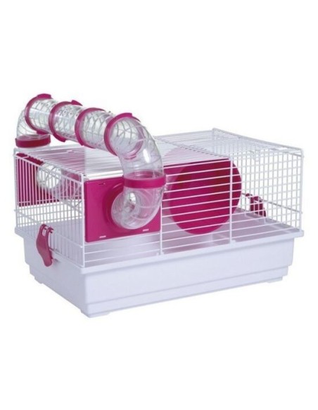 Jaula con pasadizo transparente externo ideal para hámster común. Con esta jaula tu mascota tendrá un hogar adecuado y seguro donde poder vivir. Contiene los elementos básico que necesita un hámster para vivir por lo que es perfecta como primer hogar para tu mascota. Es una jaula de excelente calidad fabricada con materiales resistentes y duraderos, producida en España por la marca Voltregá.