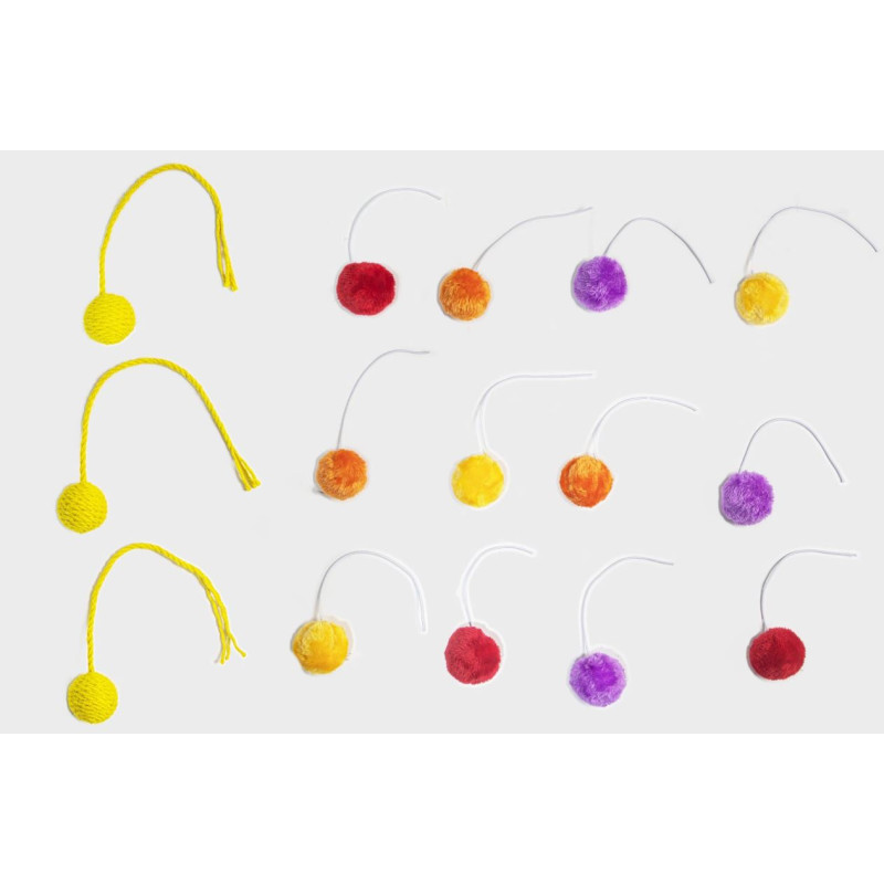 Función Adicional: Dado que están diseñadas para interactuar con el rascador de un gato, estas bolas también sirven como juguetes que estimulan la curiosidad y el instinto de caza del felino.